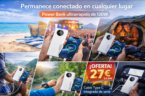 • Power Bank 120W Carga Rápida 50000mAh – Negro y Blanco | Noxavi